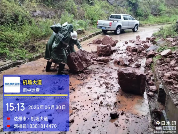 6月30日,达州突降暴雨,引发道路塌方、积水内涝、树木倒伏等险情,汛期道路安全承受严峻考验。险情就是命令。达州创达路桥公司闻“汛”而动,迅速组织30名运维队伍、巡查及应急车辆7台次,奔赴机场大道、达宣快速、达开快速现场,开展应急抢险工作。共计清理倒伏银杏树4株、处置边坡滑坡3处、清运土石方10余方,高效处置险情5处,第一时间恢复了道路安全畅通。